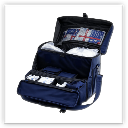 Назначение: Конструктивные особенности сумки, а также используемые материалы и фурнитура, обеспечивают удобство размещения, хранения и эксплуатации медицинского имущества.